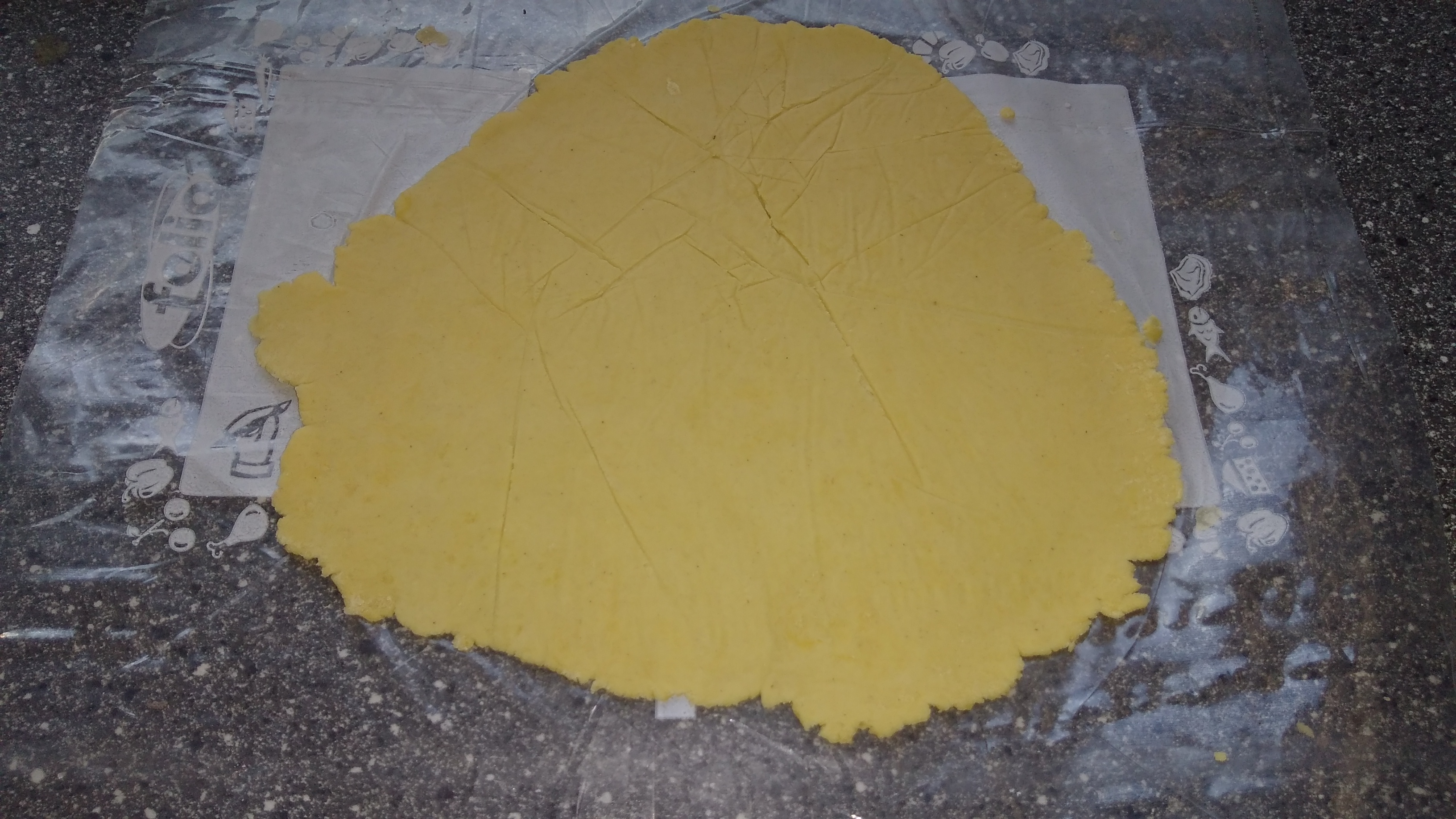 - Den Teig auf ca 80g Portionen aufteilen und zwischen zwei Frischaltebeutel dünn ausrollen.