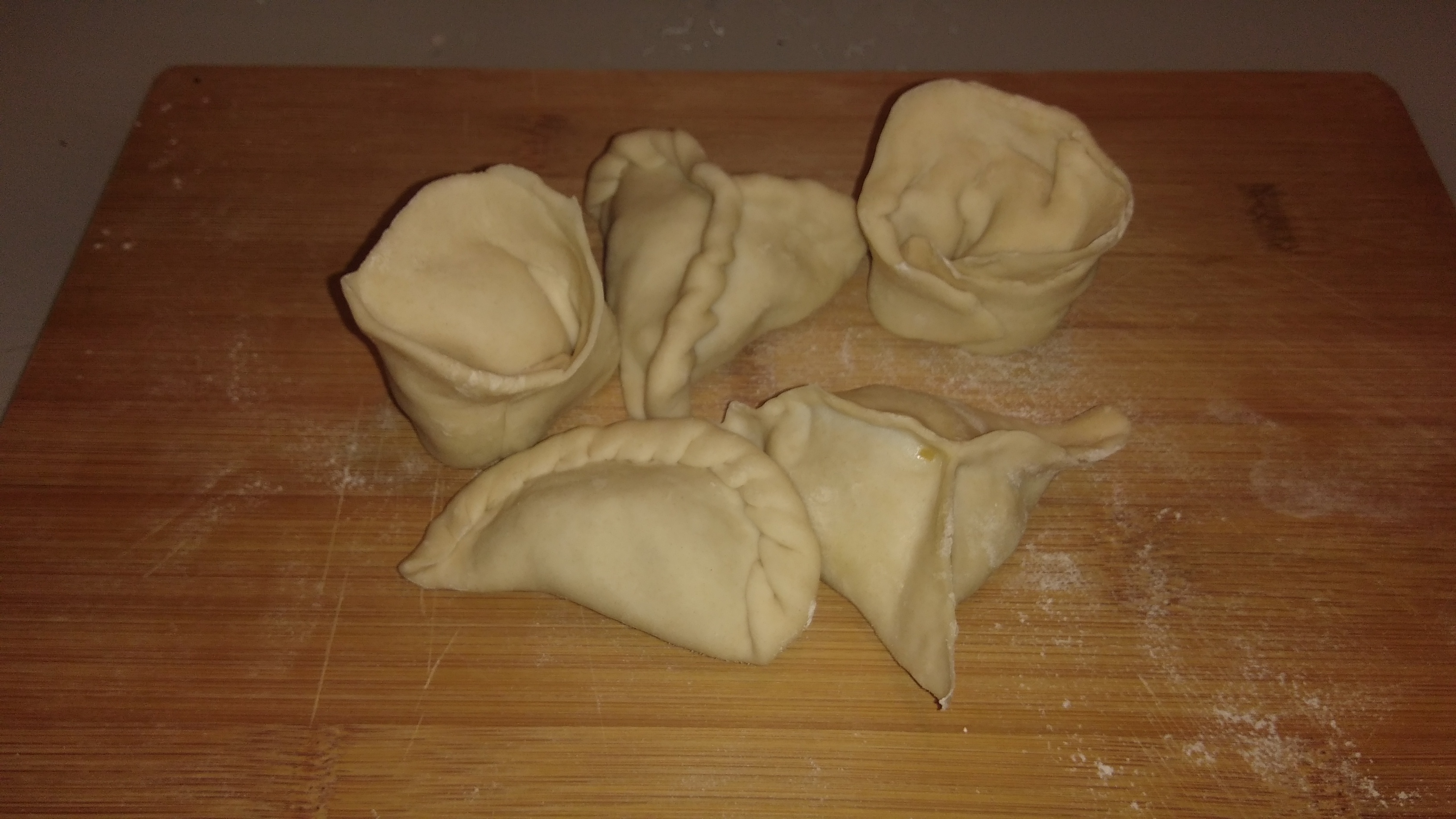 - Mir einem Löffel die Fülle in die Mitte des Teiges geben und daraus eine Tasche Formen.